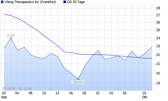 Mit dem Anstieg auf 22,19 EUR hat die Viking Therapeutics-Aktie am 01.10.2025 die 20-Tage-Linie nach oben gekreuzt.Die Viking Therapeutics-Aktie befindet sich seit dem 19.08.2025 im langfristigen ...weiterlesen