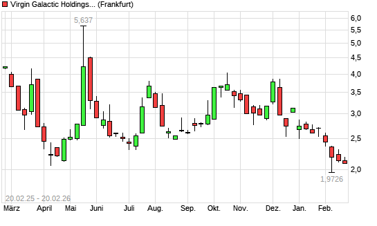 Mit dem Rücksetzer auf 2,09 EUR hat die Virgin Galactic Holdings-Aktie (ISIN US92766K4031) am 19.02.2026 ein neues 6-Monats-Tief erreicht und damit den Kurs vom ...weiterlesen