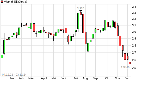 Mit dem Rücksetzer auf 8,58 EUR hat die Vivendi-Aktie (ISIN FR0000127771) am 02.12.2024 ein neues 12-Monats-Tief erreicht und damit den Kurs vom 21.11.2024 eingestellt.Die Vivendi-Aktie ...weiterlesen
