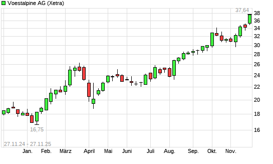 Mit dem Anstieg auf 37,14 EUR hat die Voestalpine-Aktie (ISIN AT0000937503) am 26.11.2025 ein neues 3-Jahres-Hoch erreicht und damit den Kurs vom 25.11.2025 eingestellt.Die Voestalpine-Aktie ...weiterlesen