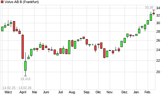 Mit dem Anstieg auf 33,38 EUR hat die Volvo-Aktie (ISIN SE0000115446) am 12.02.2026 ein neues All-Time-High erreicht und damit den Kurs vom 11.02.2026 eingestellt.Die Volvo-Aktie ...weiterlesen