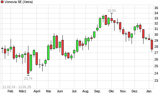 Mit dem Rücksetzer auf 27,67 EUR hat die Vonovia-Aktie (ISIN DE000A1ML7J1) am 10.01.2025 ein neues 6-Monats-Tief erreicht und damit den Kurs vom 25.07.2024 eingestellt.Die Vonovia-Aktie ...weiterlesen