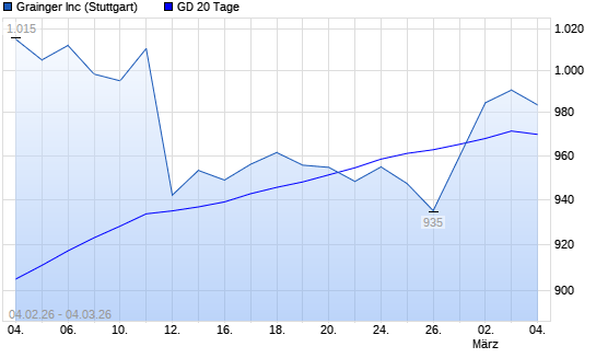 Mit dem Anstieg auf 975,60 EUR hat die W. W. Grainger-Aktie am 03.03.2026 die 20-Tage-Linie nach oben gekreuzt.Die W. W. Grainger-Aktie befindet sich seit dem 09.01.2026 im ...weiterlesen