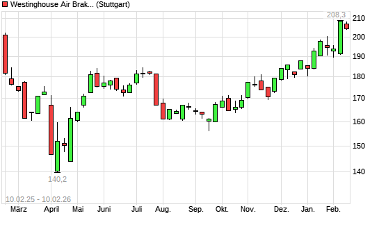 Mit dem Anstieg auf 207,40 EUR hat die Wabtec-Aktie (ISIN US9297401088) am 09.02.2026 ein neues All-Time-High erreicht und damit den Kurs vom 31.01.2025 eingestellt.Die Wabtec-Aktie befindet ...weiterlesen