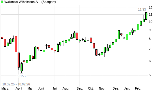 Mit dem Anstieg auf 10,75 EUR hat die Wallenius Wilhelmsen-Aktie (ISIN NO0010571680) am 17.02.2026 ein neues 12-Monats-Hoch erreicht und damit den Kurs vom 16.02.2026 ...weiterlesen