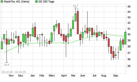 Mit dem Anstieg auf 40,20 EUR hat die WashTec-Aktie am 02.10.2025 die 200-Tage-Linie nach oben gekreuzt.Die WashTec-Aktie befand sich seit dem 06.08.2025 im langfristigen Abwärtstrend und hat ...weiterlesen