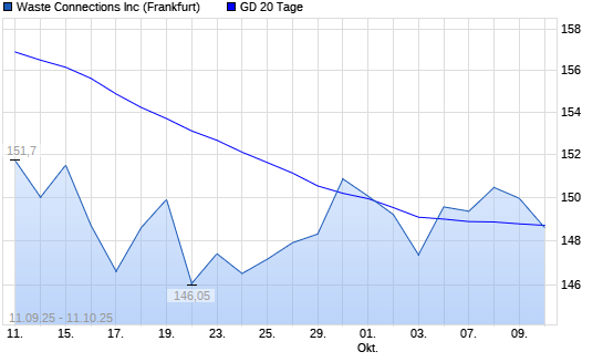 Mit dem Rücksetzer auf 148,60 EUR hat die Waste Connections-Aktie am 10.10.2025 die 20-Tage-Linie nach unten gekreuzt.Die Waste Connections-Aktie befindet sich seit dem 04.06.2025 im langfristigen ...weiterlesen