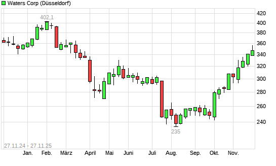 Mit dem Anstieg auf 352,50 EUR hat die Waters-Aktie (ISIN US9418481035) am 26.11.2025 ein neues 6-Monats-Hoch erreicht und damit den Kurs vom 25.11.2025 eingestellt.Die Waters-Aktie befindet ...weiterlesen