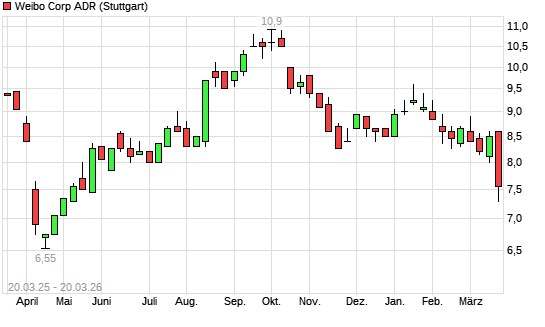 Mit dem Rücksetzer auf 7,55 EUR hat die Weibo Corporation ADR-Aktie (ISIN US9485961018) am 19.03.2026 ein neues 6-Monats-Tief erreicht und damit den Kurs vom ...weiterlesen