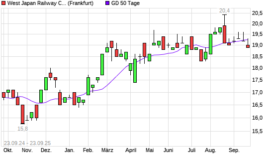 Mit dem Anstieg auf 19,30 EUR hat die West Japan Railway-Aktie am 22.09.2025 die 50-Tage-Linie nach oben gekreuzt.Die West Japan Railway-Aktie befindet sich seit dem 06.02.2025 im langfristigen ...weiterlesen