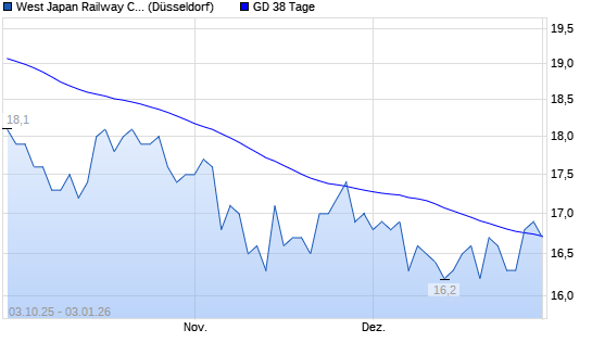 Mit dem Rücksetzer auf 16,80 EUR hat die West Japan Railway-Aktie am 02.01.2026 die 38-Tage-Linie nach unten gekreuzt.Die West Japan Railway-Aktie befindet sich seit dem 29.09.2025 ...weiterlesen