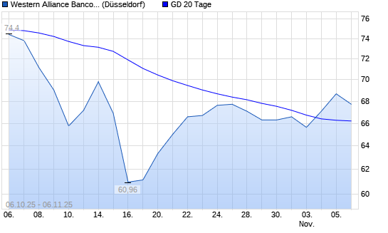 Mit dem Anstieg auf 67,08 EUR hat die Western Alliance-Aktie am 05.11.2025 die 20-Tage-Linie nach oben gekreuzt.Die Western Alliance-Aktie befindet sich seit dem 09.10.2025 im langfristigen ...weiterlesen