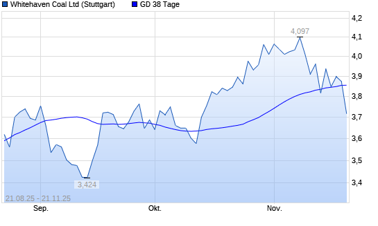 Mit dem Rücksetzer auf 3,78 EUR hat die Whitehaven Coal-Aktie am 20.11.2025 die 38-Tage-Linie nach unten gekreuzt.Die Whitehaven Coal-Aktie befindet sich seit dem 21.07.2025 ...weiterlesen
