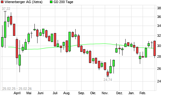 Mit dem Rücksetzer auf 28,48 EUR hat die Wienerberger-Aktie am 24.02.2026 die 200-Tage-Linie nach unten gekreuzt.Die Wienerberger-Aktie befand sich seit dem 09.02.2026 ...weiterlesen