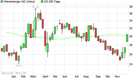 Mit dem Anstieg auf 30,48 EUR hat die Wienerberger-Aktie am 25.11.2025 die 200-Tage-Linie nach oben gekreuzt.Die Wienerberger-Aktie befand sich seit dem 28.08.2025 im langfristigen Abwärtstrend ...weiterlesen