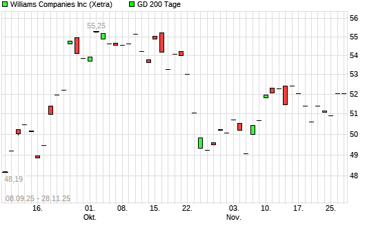 Mit dem Anstieg auf 51,67 EUR hat die Williams Companies-Aktie am 27.11.2025 die 200-Tage-Linie nach oben gekreuzt.Die Williams Companies-Aktie befand sich seit dem 25.11.2025 im langfristigen ...weiterlesen