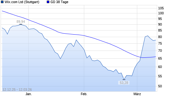 Mit dem Rücksetzer auf 77,08 EUR hat die Wix.com-Aktie am 11.03.2026 die 38-Tage-Linie nach unten gekreuzt.Die Wix.com-Aktie befindet sich seit dem 07.03.2025 im ...weiterlesen