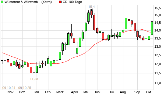 Mit dem Anstieg auf 14,20 EUR hat die Wüstenrot & Württembergische-Aktie am 08.10.2025 die 100-Tage-Linie nach oben gekreuzt.Die Wüstenrot & Württembergische-Aktie befindet sich ...weiterlesen