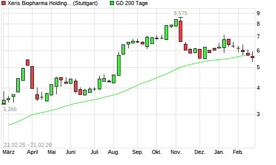 Mit dem Rücksetzer auf 5,68 EUR hat die Xeris Pharmaceuticals-Aktie am 20.02.2026 die 200-Tage-Linie nach unten gekreuzt.Die Xeris Pharmaceuticals-Aktie befand sich seit ...weiterlesen