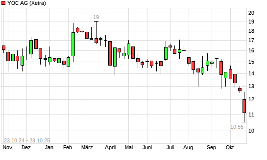 Mit dem Rücksetzer auf 10,75 EUR hat die YOC-Aktie (ISIN DE0005932735) am 22.10.2025 ein neues 12-Monats-Tief erreicht und damit den Kurs vom 21.10.2025 eingestellt.Die YOC-Aktie befindet ...weiterlesen