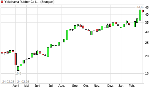 Mit dem Anstieg auf 44,20 EUR hat die Yokohama Rubber-Aktie (ISIN JP3955800002) am 23.02.2026 ein neues All-Time-High erreicht und damit den Kurs vom 20.02.2026 eingestellt.Die ...weiterlesen