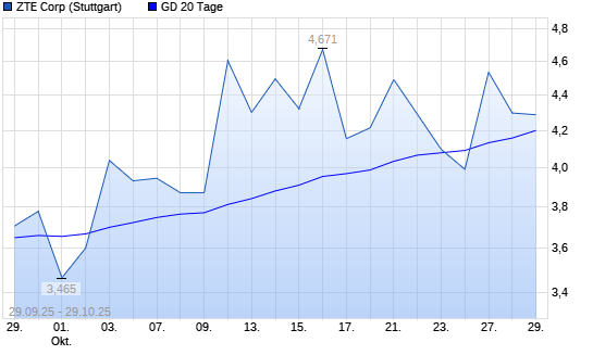 Mit dem Rücksetzer auf 4,13 EUR hat die ZTE-Aktie am 28.10.2025 die 20-Tage-Linie nach unten gekreuzt.Die ZTE-Aktie befindet sich seit dem 13.08.2025 im langfristigen ...weiterlesen