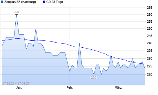 Mit dem Anstieg auf 228,00 EUR hat die Zooplus-Aktie am 16.03.2026 die 38-Tage-Linie nach oben gekreuzt.Die Zooplus-Aktie befindet sich seit dem 02.01.2026 im langfristigen ...weiterlesen