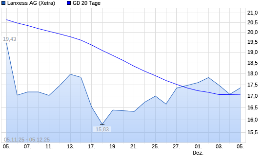 Mit dem Rücksetzer auf 16,99 EUR hat die Lanxess-Aktie am 04.12.2025 die 20-Tage-Linie nach unten gekreuzt.Die Lanxess-Aktie befindet sich seit dem 25.07.2025 im langfristigen Abwärtstrend ...weiterlesen