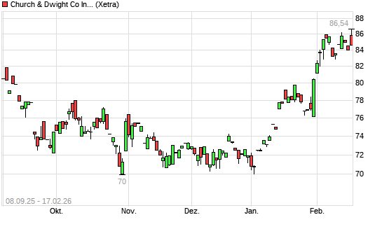 Mit dem Anstieg auf 85,78 EUR hat die Church & Dwight-Aktie (ISIN US1713401024) am 16.02.2026 ein neues 6-Monats-Hoch erreicht und damit den Kurs vom 05.02.2026 eingestellt.Die Church ...weiterlesen