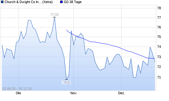 Mit dem Anstieg auf 73,10 EUR hat die Church & Dwight-Aktie am 19.12.2025 die 38-Tage-Linie nach oben gekreuzt.Die Church & Dwight-Aktie befindet sich seit dem 07.04.2025 im langfristigen ...weiterlesen