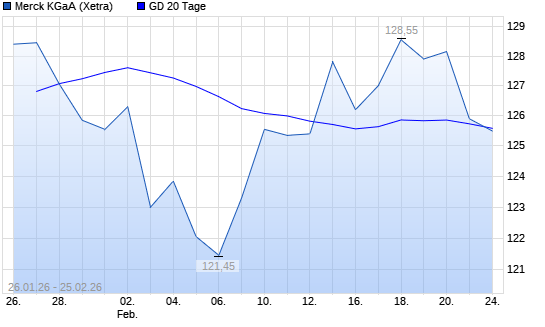 Mit dem Rücksetzer auf 125,10 EUR hat die Merck-Aktie am 24.02.2026 die 20-Tage-Linie nach unten gekreuzt.Die Merck-Aktie befindet sich seit dem 01.12.2025 im ...weiterlesen