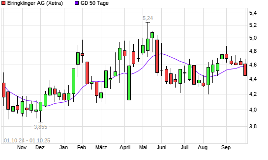 Mit dem Rücksetzer auf 4,54 EUR hat die Elringklinger-Aktie am 30.09.2025 die 50-Tage-Linie nach unten gekreuzt.Die Elringklinger-Aktie befindet sich seit dem 07.08.2025 im langfristigen ...weiterlesen