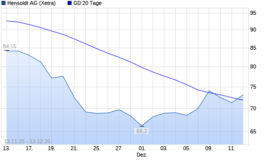 Mit dem Anstieg auf 73,00 EUR hat die Hensoldt-Aktie am 12.12.2025 die 20-Tage-Linie nach oben gekreuzt.Die Hensoldt-Aktie befindet sich seit dem 17.11.2025 im langfristigen Abwärtstrend und ...weiterlesen