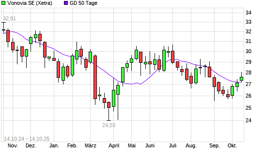 Mit dem Anstieg auf 27,41 EUR hat die Vonovia-Aktie am 13.10.2025 die 50-Tage-Linie nach oben gekreuzt.Die Vonovia-Aktie befindet sich seit dem 28.08.2025 im langfristigen Abwärtstrend und hat ...weiterlesen