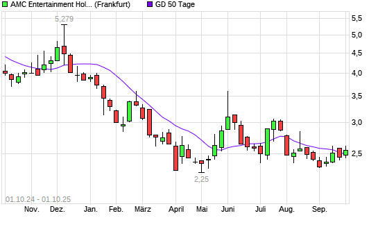 Mit dem Rücksetzer auf 2,48 EUR hat die AMC Entertainment-Aktie am 30.09.2025 die 50-Tage-Linie nach unten gekreuzt.Die AMC Entertainment-Aktie befindet sich seit dem 28.05.2025 im langfristigen ...weiterlesen