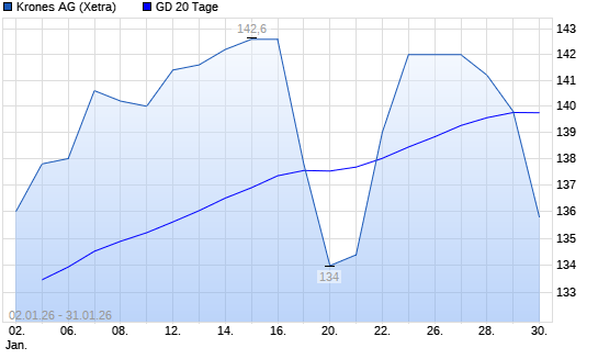 Mit dem Rücksetzer auf 138,00 EUR hat die Krones-Aktie am 30.01.2026 die 20-Tage-Linie nach unten gekreuzt.Die Krones-Aktie befindet sich seit dem 22.01.2026 im ...weiterlesen