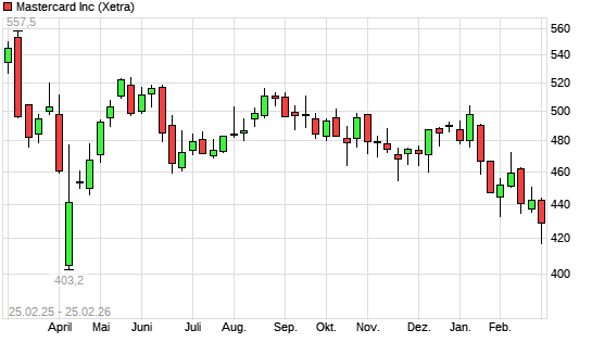Mit dem Rücksetzer auf 419,80 EUR hat die Mastercard-Aktie (ISIN US57636Q1040) am 24.02.2026 ein neues 12-Monats-Tief erreicht und damit den Kurs vom 23.02.2026 ...weiterlesen