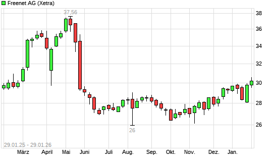 Mit dem Anstieg auf 30,12 EUR hat die Freenet-Aktie (ISIN DE000A0Z2ZZ5) am 28.01.2026 ein neues 6-Monats-Hoch erreicht und damit den Kurs vom 27.01.2026 eingestellt.Die ...weiterlesen