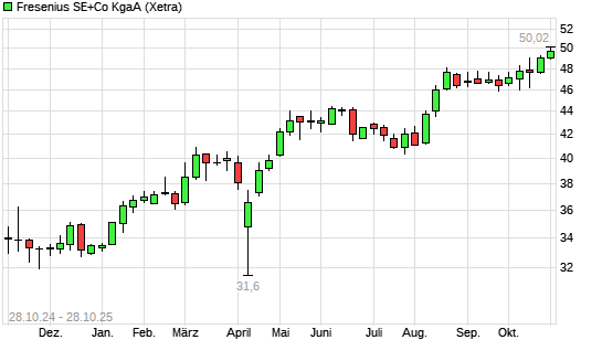 Mit dem Anstieg auf 49,24 EUR hat die Fresenius-Aktie (ISIN DE0005785604) am 27.10.2025 ein neues 5-Jahres-Hoch erreicht und damit den Kurs vom 24.10.2025 eingestellt.Die Fresenius-Aktie befindet ...weiterlesen