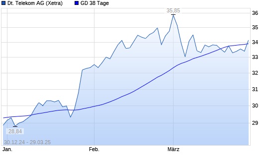 Mit dem Anstieg auf 34,14 EUR hat die Deutsche Telekom-Aktie am 28.03.2025 die 38-Tage-Linie nach oben gekreuzt.Die Deutsche Telekom-Aktie befindet sich seit dem 22.04.2024 im langfristigen ...weiterlesen