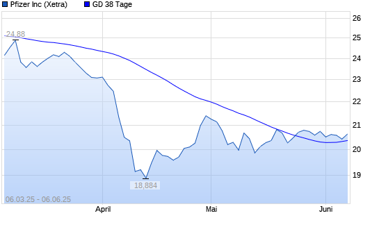 Mit dem Rücksetzer auf 20,27 EUR hat die Pfizer-Aktie am 05.06.2025 die 38-Tage-Linie nach unten gekreuzt.Die Pfizer-Aktie befindet sich seit dem 15.01.2025 im langfristigen Abwärtstrend ...weiterlesen
