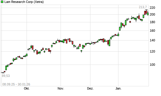 Mit dem Anstieg auf 202,70 EUR hat die Lam Research-Aktie (ISIN US5128073062) am 29.01.2026 ein neues All-Time-High erreicht und damit den Kurs vom 28.01.2026 eingestellt.Die Lam Research-Aktie ...weiterlesen