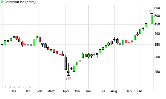 Mit dem Anstieg auf 506,00 EUR hat die Caterpillar-Aktie (ISIN US1491231015) am 30.10.2025 ein neues All-Time-High erreicht und damit den Kurs vom 29.10.2025 eingestellt.Die Caterpillar-Aktie ...weiterlesen