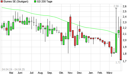 Mit dem Rücksetzer auf 1,98 EUR hat die elumeo SE-Aktie am 03.04.2025 die 200-Tage-Linie nach unten gekreuzt.Die elumeo SE-Aktie befand sich seit dem 27.03.2025 im langfristigen Aufwärtstrend ...weiterlesen
