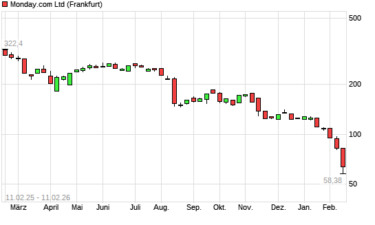 Mit dem Rücksetzer auf 62,04 EUR hat die Monday. Com-Aktie (ISIN IL0011762130) am 10.02.2026 ein neues All-Time-Low erreicht und damit den Kurs vom 09.02.2026 eingestellt.Die Monday. Com-Aktie ...weiterlesen