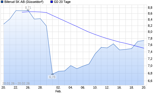 Mit dem Anstieg auf 7,62 EUR hat die Billerud SK AB-Aktie am 19.02.2026 die 20-Tage-Linie nach oben gekreuzt.Die Billerud SK AB-Aktie befindet sich seit dem 29.01.2026 im ...weiterlesen