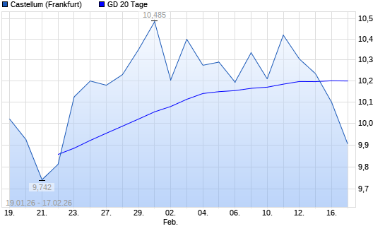 Mit dem Rücksetzer auf 10,10 EUR hat die Castellum-Aktie am 16.02.2026 die 20-Tage-Linie nach unten gekreuzt.Die Castellum-Aktie befindet sich seit dem 23.01.2026 im ...weiterlesen