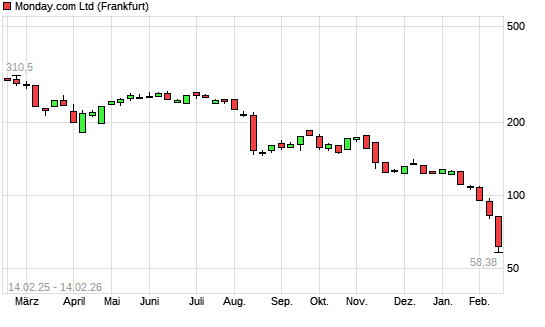 Mit dem Rücksetzer auf 61,34 EUR hat die Monday. Com-Aktie (ISIN IL0011762130) am 13.02.2026 ein neues All-Time-Low erreicht und damit den Kurs vom 12.02.2026 eingestellt.Die ...weiterlesen