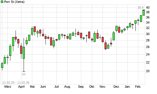 Mit dem Anstieg auf 38,20 EUR hat die PORR-Aktie (ISIN AT0000609607) am 10.02.2026 ein neues 5-Jahres-Hoch erreicht und damit den Kurs vom 09.02.2026 eingestellt.Die PORR-Aktie ...weiterlesen