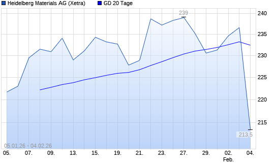 Mit dem Rücksetzer auf 230,00 EUR hat die Heidelberg Materials-Aktie am 03.02.2026 die 20-Tage-Linie nach unten gekreuzt.Die Heidelberg Materials-Aktie befindet sich seit ...weiterlesen